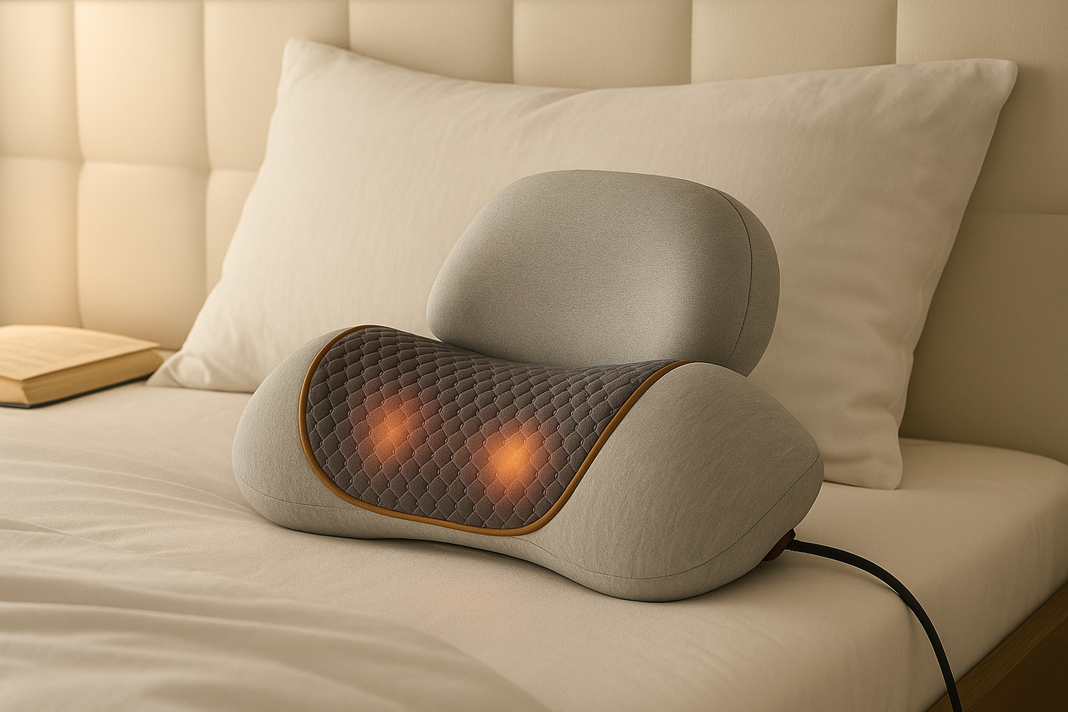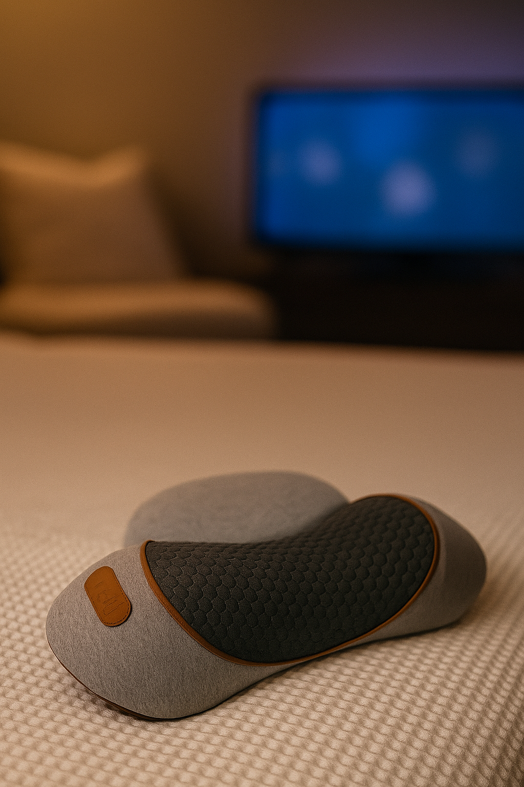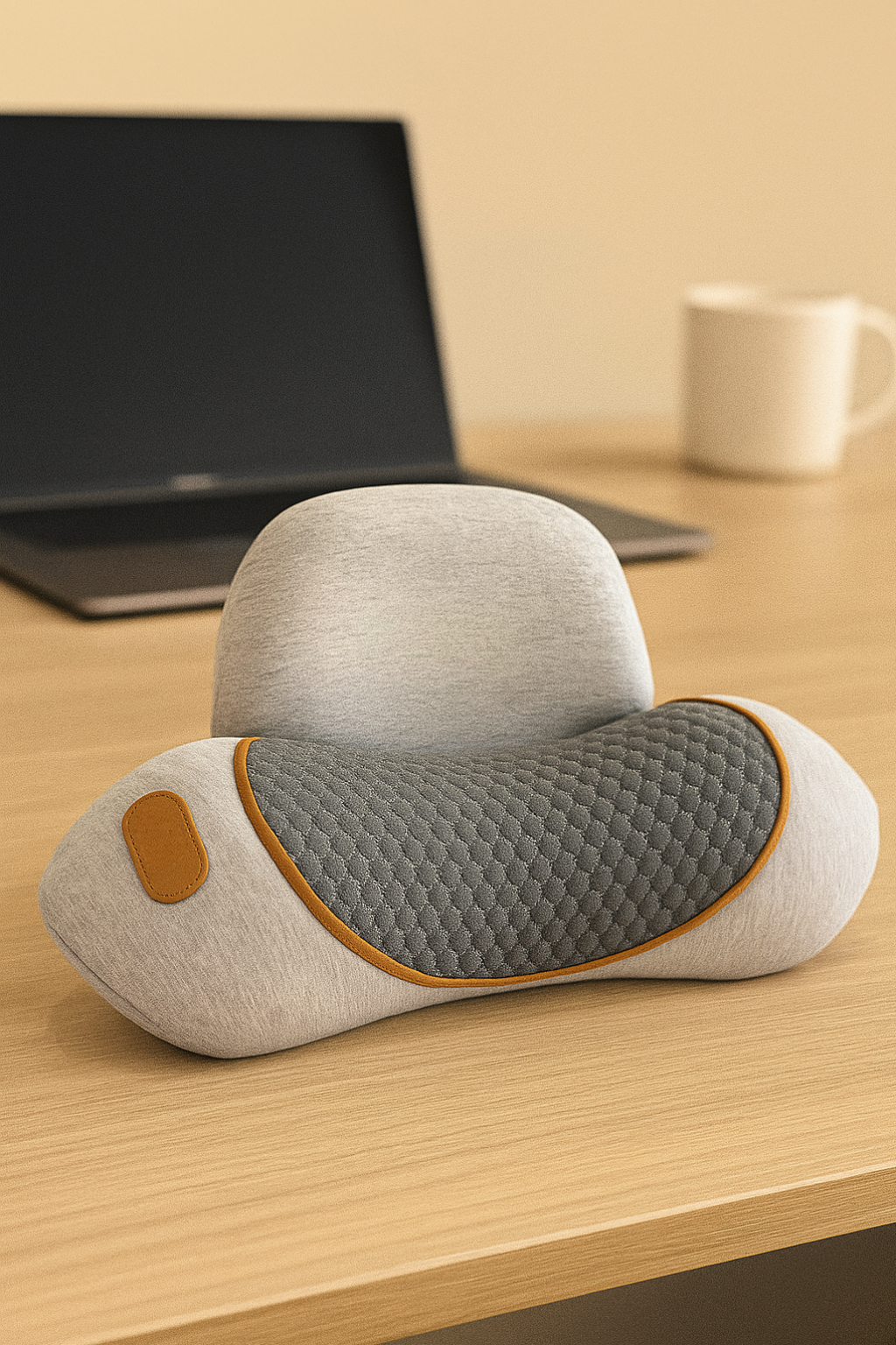 RESTEZ is a plug-in neck massager pillow that combines soothing heat, gentle vibration, and ergonomic support. Just connect it via USB, position it comfortably, and enjoy instant relief.